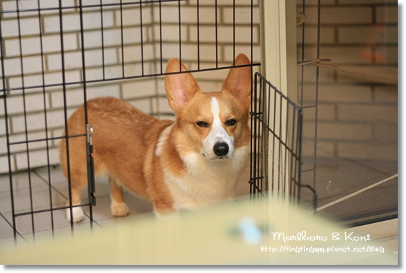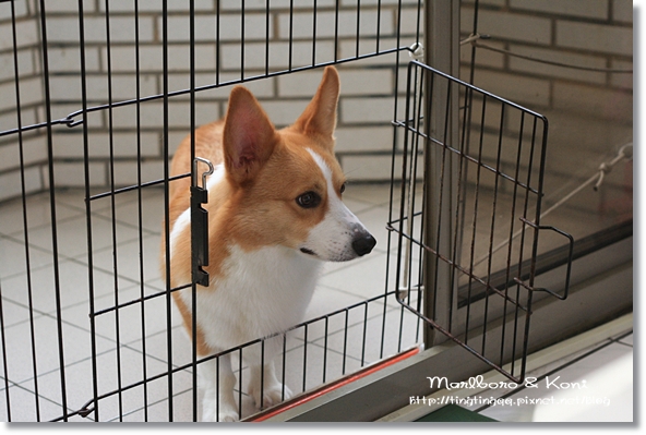 而平常我們不在家時,媽寶柯妮都是關在房間的籠子裡